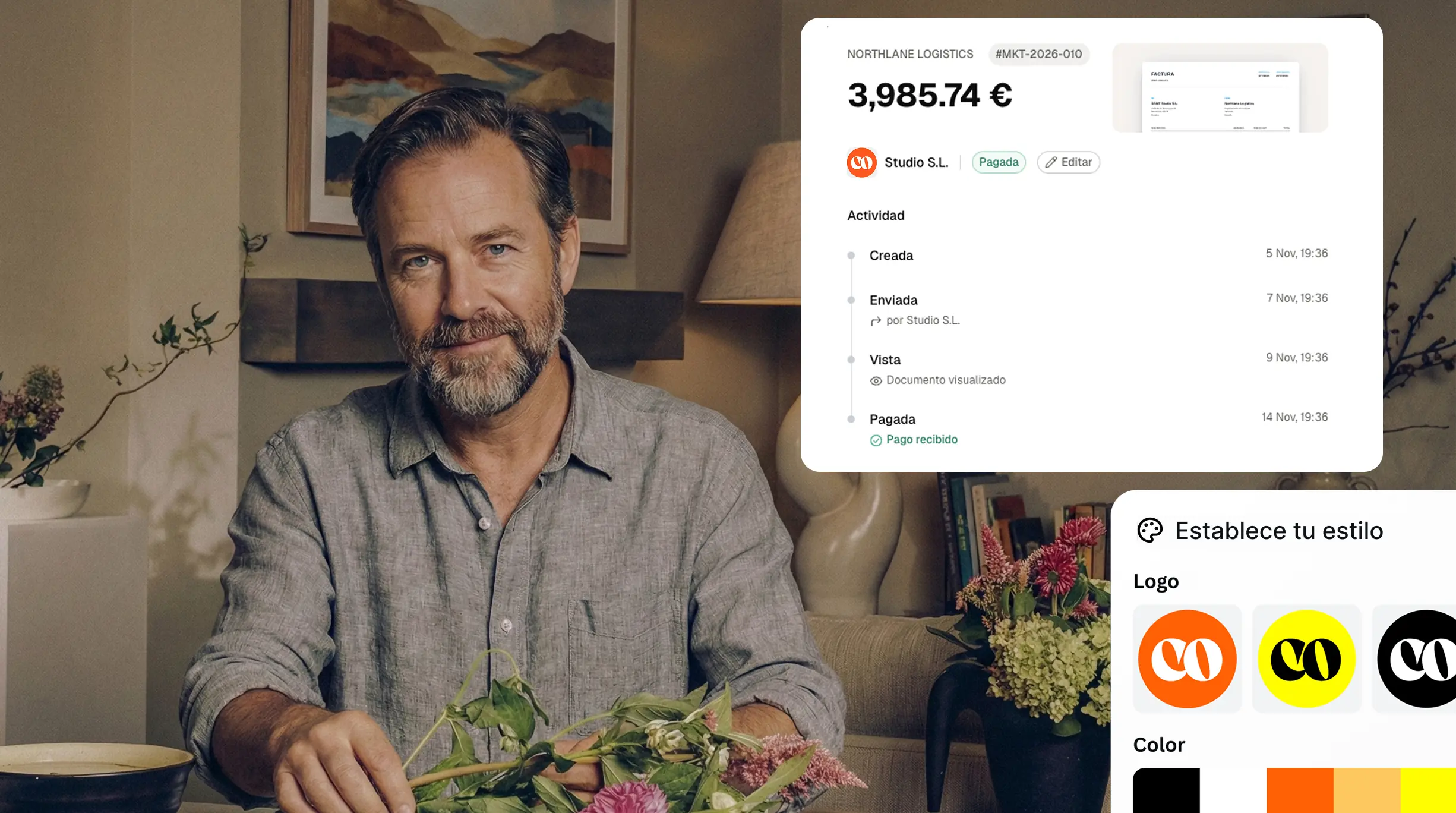 Respeta la coherencia visual de tu marca y refuerza la confianza de tus clientes con herramientas flexibles para crear presupuestos y facturas personalizadas a tu gusto.
